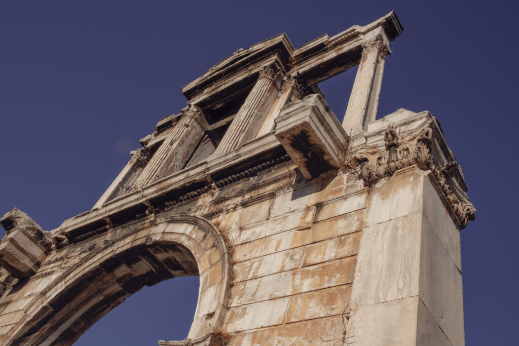 Am Rande der Stadt, direkt am Ufer des Flusses Ilissos begann der Bau des riesigen Zeustempels schon im 6. Jahrhundert v.Chr. Er blieb jedoch unvollständig bis zu der Zeit des römischen Kaisers Hadrians, der dieses Prachtmonument schließlich baute und in eine riesige Umfassungsmauer einschloss. Sechzehn riesige von den damals über 100 korinthischen Säulen bezeugen heute noch die alte Pracht.